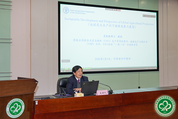 原联合国粮农组织(FAO)总干事特别顾问、植物生产与保护司(NSP)司长夏敬源到中棉所调研指导