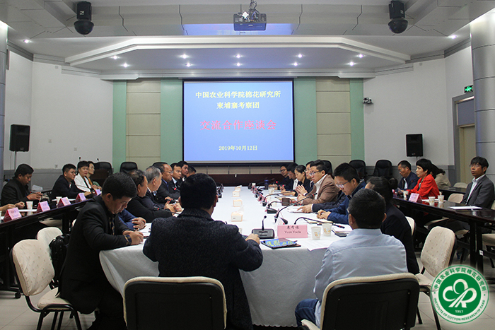 2019年10月11~13日,柬埔寨王国国务委员塞雷斯·宾、实居省副省长万纳罗·康等一行12人来中国农业科学院棉花研究所访问,并就柬埔寨发展棉花生产的可行性及双方棉花科技合作相关问题开展深入交流。
