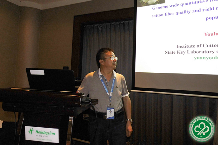 G.hirsutum RIL Population)”的大会主题报告,分别介绍了棉花抗旱耐盐种质创新和棉花产量纤维品质遗传研究等最新研究进展,在大会交流中产生了广泛的影响。