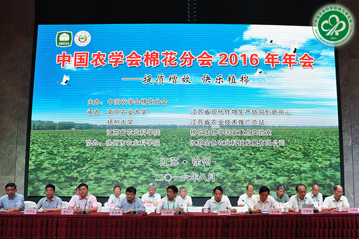 中国农学会棉花分会2016年年会于8月8日—9日在江苏徐州召开,会议由南京农业大学、扬州大学、江苏省农科院、江苏省农业技术推广总站、江苏省现代作物生产协同创新中心、棉花生物学国家重点实验室承办,徐州市农业科学院、江苏金色农业科技发展有限公司协办。参会人员630余人。会议主题:提质增效、快乐植棉。会前编辑出版论文汇编,收录学术论文(摘要)69篇。