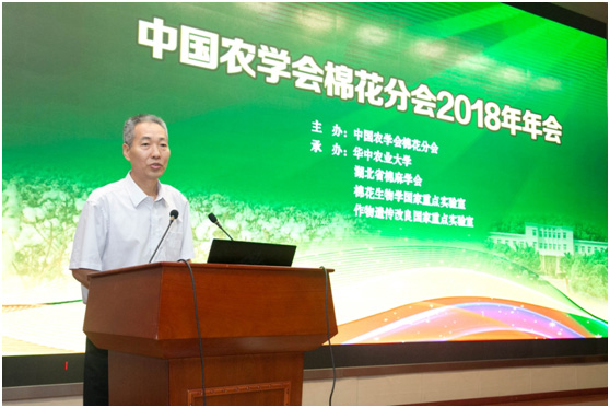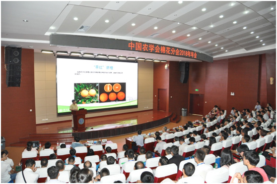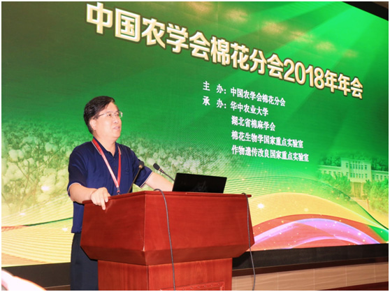 中国农学会棉花分会2018年年会于8月8~9日在湖北武汉召开,会议由华中农业大学、湖北省棉麻学会、棉花生物学国家重点实验室和作物遗传改良国家重点实验承办。来自全国18个省(市)、自治区,120多个高校、科研、生产、管理和企业近600名代表参加了本次会议。会议主题:绿色植棉、创新发展。会前编辑出版论文汇编,收录学术论文(摘要)170篇。