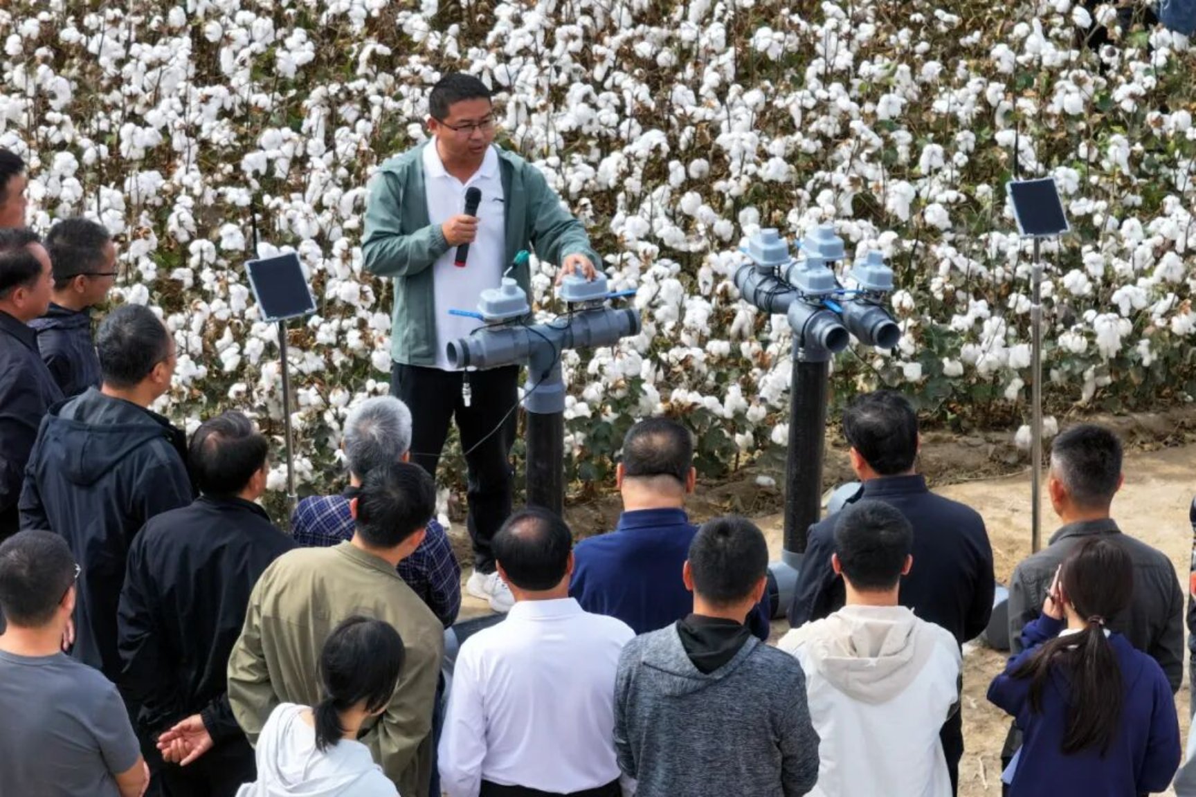 当天,来自中国农业大学、中国农业科学院棉花研究所和自治区农业科学院等单位的领导专家齐聚田间,现场考察智慧栽培技术实际应用成效。