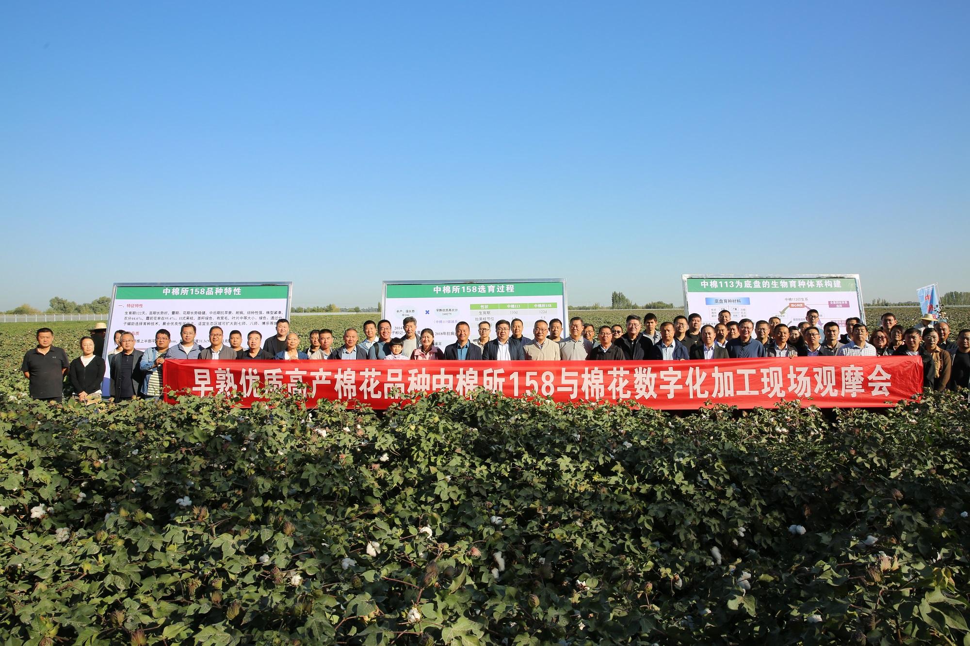 9月6日,在新疆生产建设兵团第七师胡杨河市,中国农业科学院棉花研究所(以下简称中棉所)、中国农业科学院西部农业研究中心联合石河子大学,召开早熟优质高产棉花品种中棉所158与棉花数字化加工现场观摩会,并举行品种转让签约仪式。