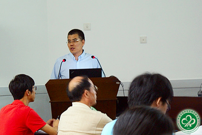 在所期间,张宝红教授作了题为“The micro-RNA: a new target for improving plant tolerance to abiotic stress”的学术报告,介绍了micro-RNA在植物抗性中的作用、意义以及在棉花研究中的最新进展,对提高我国棉花抗逆性研究和分子育种具有指导意义。此外,张宝红教授还参观了我所相关课题实验室和试验农场,并与我所生物技术室部分研究人员以及研究生进行了座谈,主要就棉花生物技术、细胞学和现代分子生物学等研究进行了深入探讨。