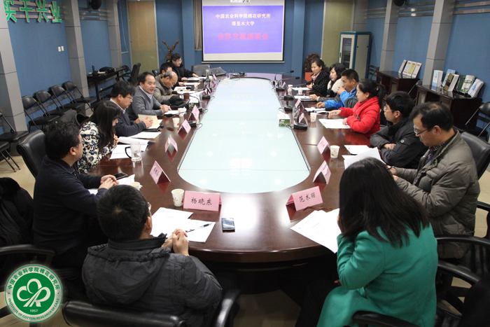 座谈会上,双方重点就棉花科学学院管理运行机制、棉花实验班人才培养和研究生联合培养等事宜交换了意见和建议,并达成共识。双方决定将新疆兵团第一师相关领导和职能部门人员增加为棉花科学学院管理委员会人员;鉴于“棉花西进中亚”战略,建议学术委员会增加兵团内部专家及中亚国家专家。双方一致同意联合兵团第一师加快推进棉花科学学院的地方法人化进程。为确保2016年3月首届棉花实验班在我所顺利开班,与会人员针对棉花实验班课程设置、授课方式、学生撰写毕业论文以及学生管理等问题交换了意见。此外,双方建议完善研究生联合培养机制,明确第一导师/合作导师相关责任,解决目前硕士研究生联合培养存在的问题。