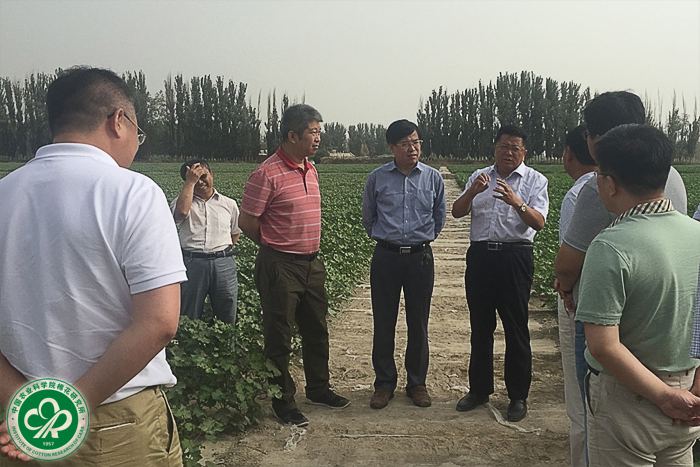 2016年6月12~14日,所长李付广、中国农科院基本建设局处长徐欢一行赴新疆农一师八团考察棉花增产增效技术集成生产模式研究项目的进展,检查阿拉尔综合试验站工作,并就新疆优质棉生产和阿拉尔综合试验站建设与农一师副师长杨江勇进行沟通交流。我所计财处处长马雄风、新疆科研中心副主任朱海勇等陪同考察。