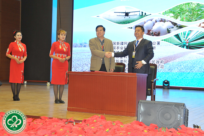 会上,我所与沙雅县签订《棉花科技产业战略合作协议》,共同推进双方在棉花科技、产业等领域的全面合作;与河北农业大学、新疆守信种业科技有限公司和中棉种业科技股份有限公司签订《棉花新品种开发战略合作协议》,力图通过四方合作加快棉花产业转型升级,创新企业经营模式,推进棉花产业融合,促进科研单位与企业的协同发展,实现互利共赢。
