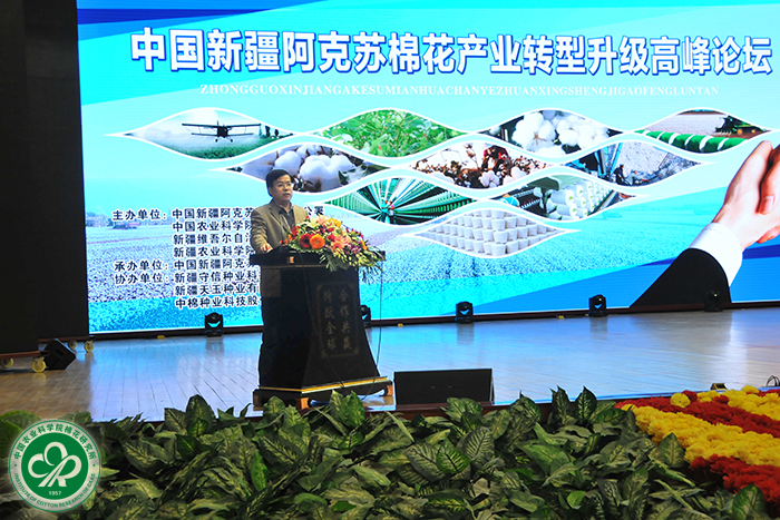 论坛由沙雅县委书记王新革主持,阿克苏地委副书记、行署专员麦尔丹·木盖提出席论坛并致辞。我所喻树迅院士、所长李付广,新疆自治区农业厅副厅长热比娅·玉山,新疆农科院书记朱政,阿克苏地区各县市农业部门和沙雅县相关领导,涉棉企业、棉农代表等800余人参加。