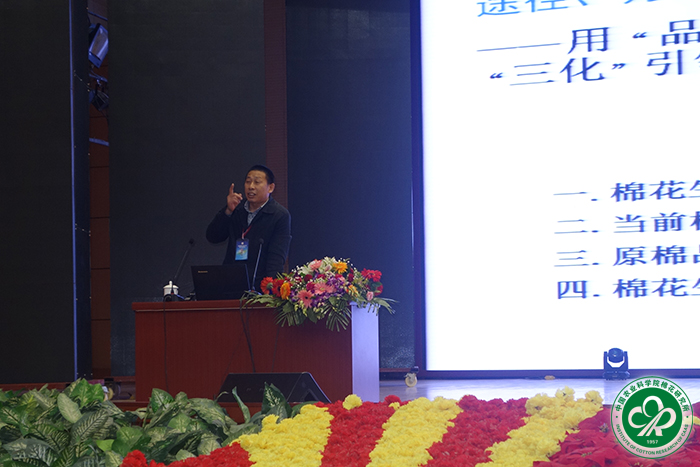 我所喻树迅院士、所长李付广和国家棉花产业联盟办公室副主任毛树春研究员分别做了题为《提质增效—我国棉花产业的目标》《国家棉花产业联盟助推我国棉花产业升级》《我国棉花转型升级提质增效的途径、方法和措施》的主旨报告,主要就棉花产业转型升级和提质增效、组建国家棉花产业联盟以及新疆棉花产业面临的挑战与发展战略等与参会人员进行了交流和探讨。