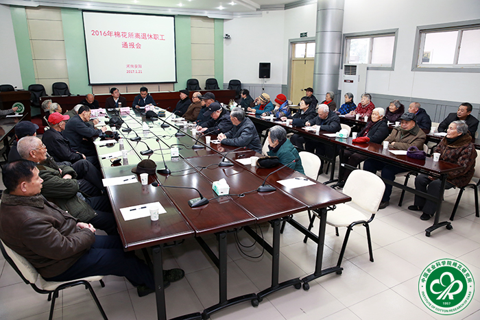 会上,侯志勇详细介绍了所领导班子的分工职责。吕春生发表了热情洋溢的“新春团拜”讲话,他代表所领导班子向离退休职工拜年,并致以节日的问候。李付广分析了我国棉花发展的趋势,并就“十三五”我所工作重点和发展规划、2016年科研进展、研究生培养、平台条件建设、人才队伍建设、“两学一做”以及中央巡视整改等工作进行了详细的通报。