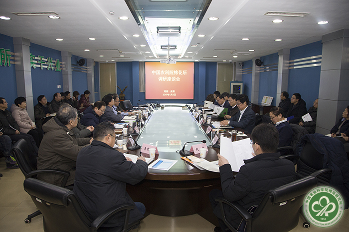 2019年1月3日,中国农业科学院党组书记张合成到棉花研究所调研,强调中棉所要面向棉花主产区,引领产业高质量发展。