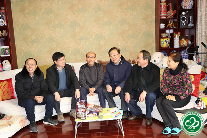 春节前夕,中国农业科学院棉花研究所所长李付广、党委书记潘燕荣、副书记宋国立、副所长张西岭及党委办公室、人事处负责人一行专程走访慰问了离退休老干部、老党员、老专家、困难老职工及老干部遗属。
