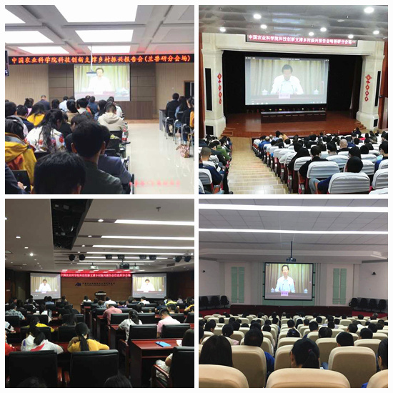 院党组书记张合成等院领导班子成员,翟虎渠、薛亮等院级老领导,范云六院士、方智远院士出席会议。院属京区各单位领导班子成员、首席科学家,院机关全体干部、离退休党支部书记在主会场参加报告会。院属36个单位全体干部职工、科研人员、在所学生8000余人通过视频同步收看大会实况。