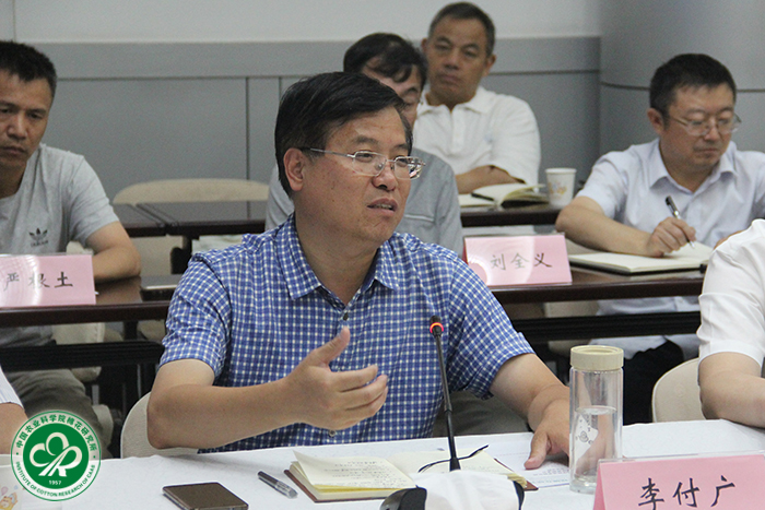 潘燕荣在总结讲话中强调,促进我国科技成果转化具有深远的战略意义和重要的现实作用,中棉所要加强和改进成果转化工作,充分发挥自身优势,将更多科学发现和技术发明从试验室里挖掘出来,为建设创新型国家贡献智慧。(摄影:王文魁)