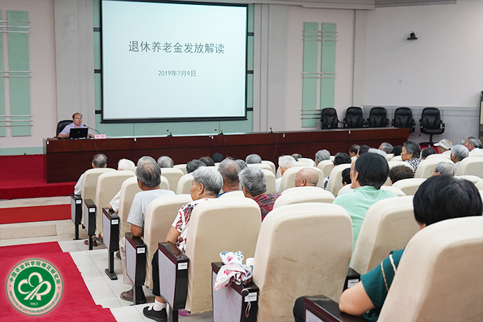 为进一步开展好“不忘初心、牢记使命”主题教育活动,解决好离退休职工最关心的问题,从小事做起,狠抓落实,2019年7月9日下午,人事处在产业楼报告厅组织召开专题会议,为离退休职工讲解退休养老金相关问题。
